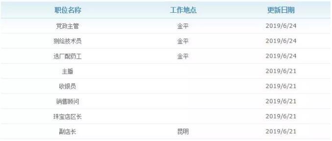 云南黃金集團2019年招聘