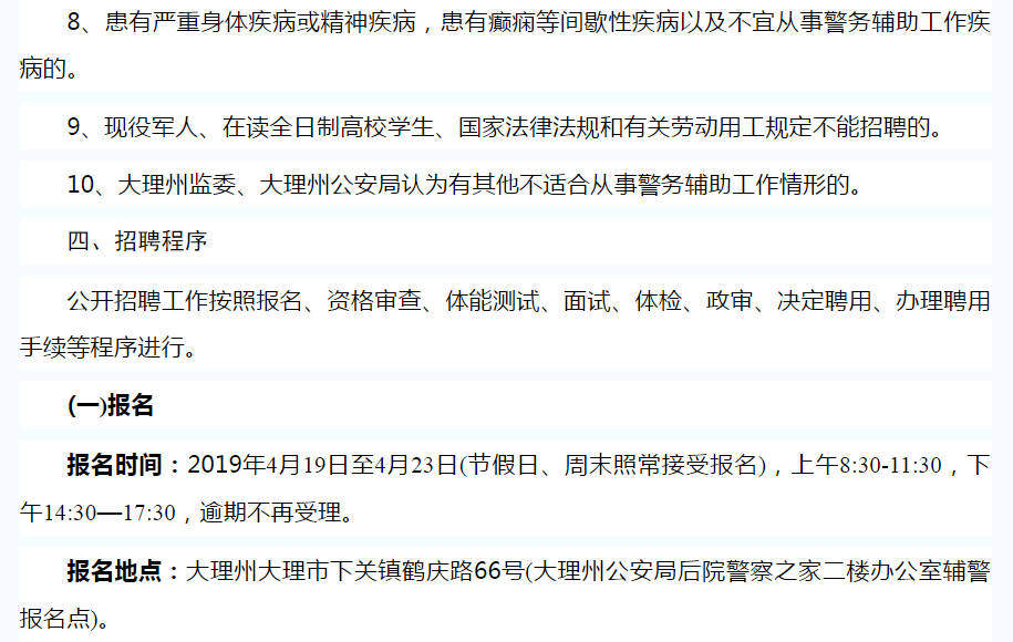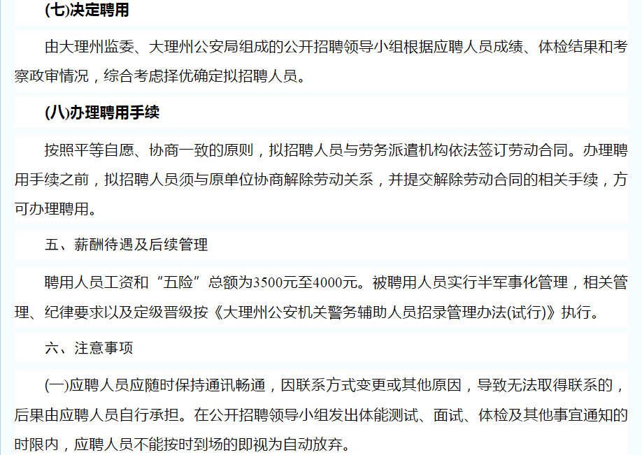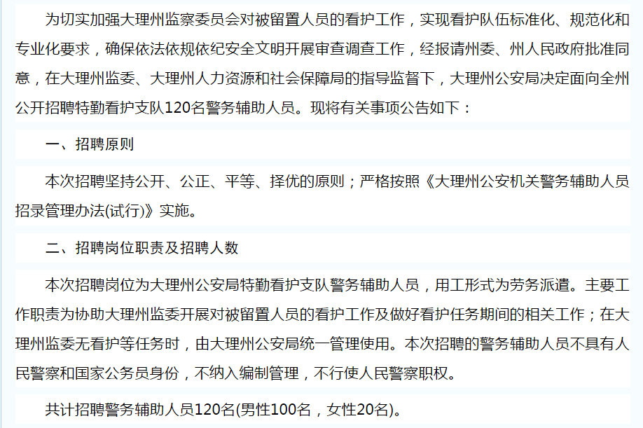 大理州公安局關(guān)于公開招聘特勤看護(hù)支隊(duì)警務(wù)輔助人員的公告
