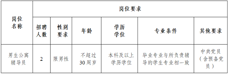 為進一步加強學(xué)校專職輔導(dǎo)員隊伍建設(shè),經(jīng)學(xué)校研究,學(xué)校決定招聘2名編制外合同制專職輔導(dǎo)員,具體招聘有關(guān)事項公告如下: