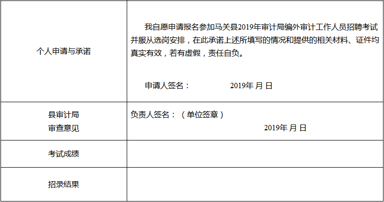 2019年馬關(guān)縣審計局公開招聘編外審計工作人員報名表