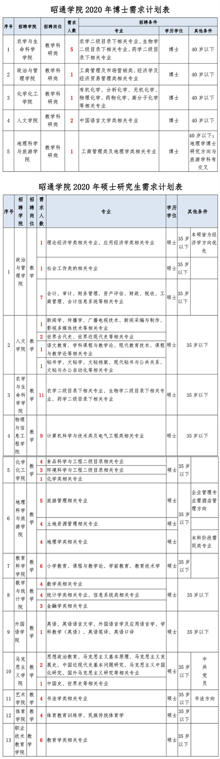 各教學(xué)學(xué)院招聘人數(shù)、專(zhuān)業(yè)等具體要求,以昭通學(xué)院后續(xù)發(fā)布的招聘工作的相關(guān)公告為準(zhǔn)。